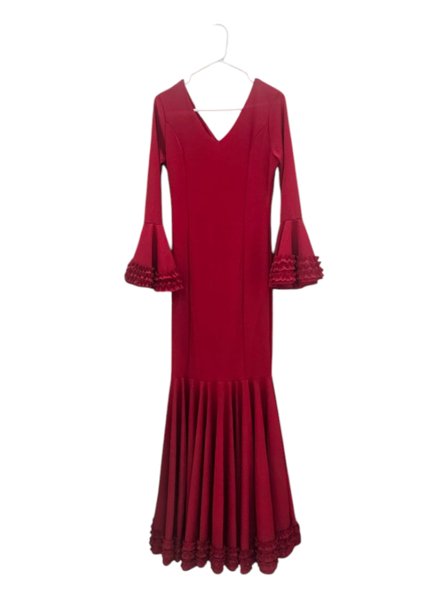 Impresiona con el encanto y elegancia del vestido "Pasión Flamenca". Este diseño en un impactante color rojo resalta la feminidad con su silueta ajustada, escote en V y detalles únicos como las mangas acampanadas con delicados volantes. El faldón con vuelo y terminación de encaje añade un toque tradicional y sofisticado, perfecto para ocasiones especiales donde quieras destacar. Ideal para eventos, celebraciones o espectáculos, este vestido captura el espíritu vibrante y apasionado del estilo flamenco. ¡Haz que cada movimiento cuente con el vestido "Pasión Flamenca"!